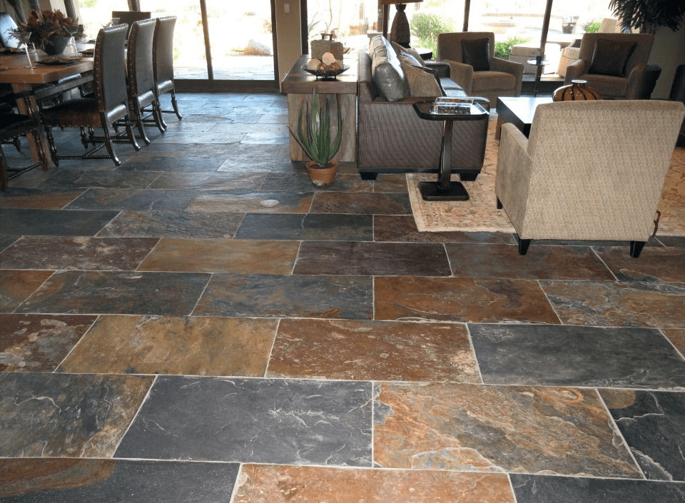 The pros of stone flooring include an elegant and bold impression, durability and long life, and waterproof capabilities with proper sealing. The cons of stone flooring include the difficulty to install, the cold feel under foot, the difficulty of maintenance, and the high expense. The average cost of stone flooring depends on the type of stone chosen and the location of the flooring (indoor or outdoor) and can vary from $8 to $24 per square foot for indoor or $9 to $44 per square foot outside.