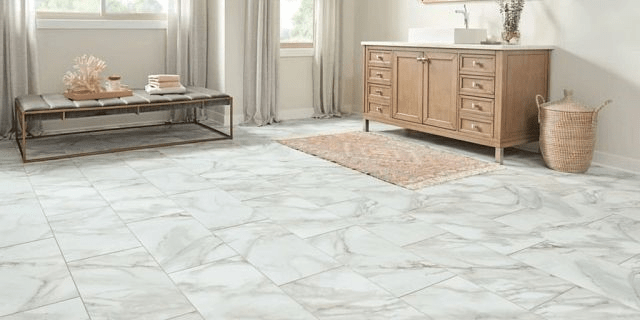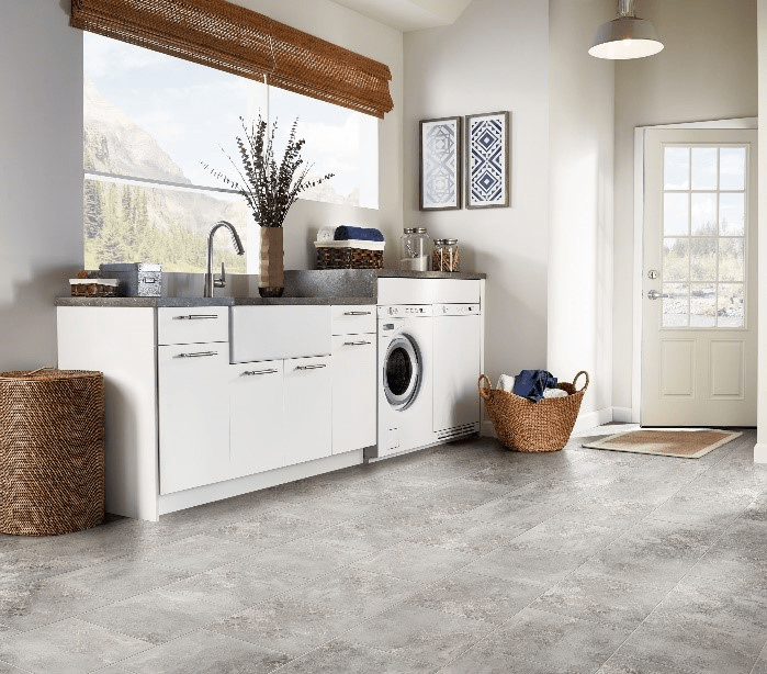 Vinyl flooring is created using plastic and is available in many forms including tile, sheet, and plank. The plastic composition allows this flooring to be water resistant. So much so that the flooring will not sustain damage even is water remains on the surface of the flooring for extended periods of time. Luxury Vinyl Plank (aka LVP and Luxury Vinyl Tile (LVT) have gained popularity recently for their durability, ease of maintenance and relatively low cost in comparison to wood floors. There are a variety of styles available in Vinyl flooring, which gives homeowners many choices.