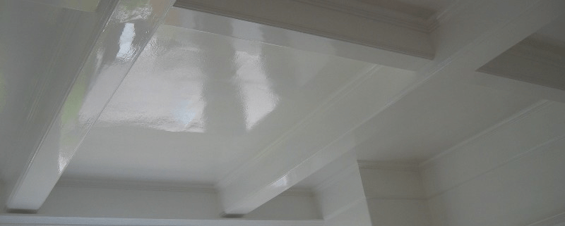 Due to the lack of sheen on flat paint, it will easily cover imperfections not only in application, but also on walls. Nail holes and floating issues are more easily covered with a flat paint than a shinier finish. The problem with flat paint is its very low durability. It is the least durable type of finish for a paint. Flat paint will be damaged by cleaners (and sometimes even simple water depending on the grade). Despite it’s lower durability, many home builders will use flat paint in the whole house because it is easier to cover by painting over and it is cheaper to apply as it can be watered down to put in a spray gun. Flat paints are recommended for low-traffic areas and areas that won’t be touched such as dining rooms and ceilings.