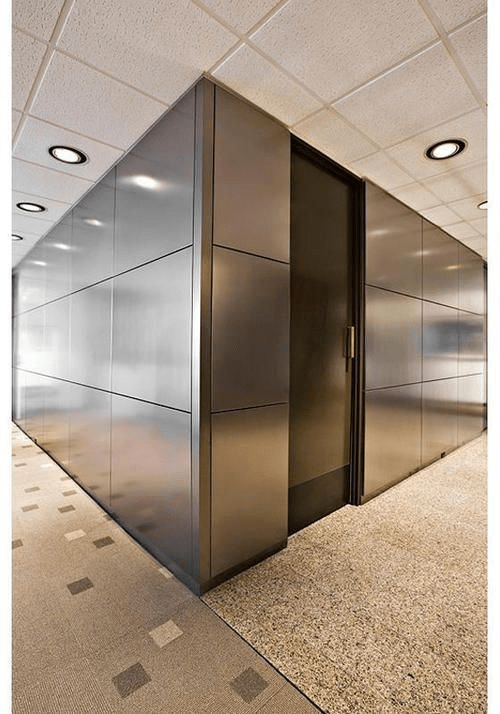 Wall skin is a wall treatment made from thin materials installed over a wall to add a different design aesthetic. It is a useful way of adding detail to a space. Wall skins can be comprised of wood veneer, metal, or other materials.