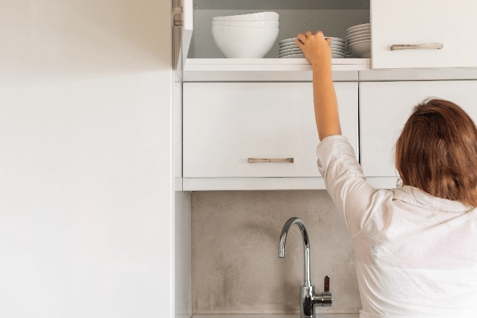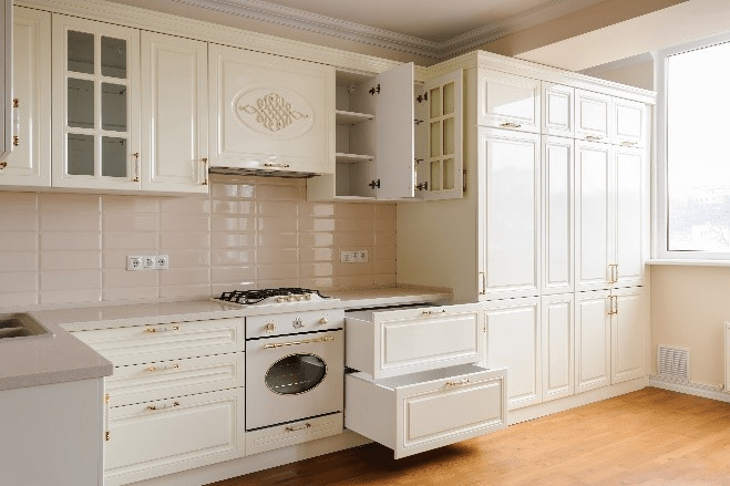 Shaker style cabinets are so named because they imitate the furniture designed by the Shakers. Shakers were known for being skilled craftsmen and carpenters. Many shaker style cabinets are built using hardwood to replicate the high-quality materials they are named after. As shaker style cabinets have become more popular, prefabricated cabinets using veneer panels have started to be produced. Depending on your kitchen style, shaker cabinets can use natural or light finishes and can even be distressed to emulate an aged appearance. Wooden knobs work well with shaker style cabinets because they pair with the simple features.