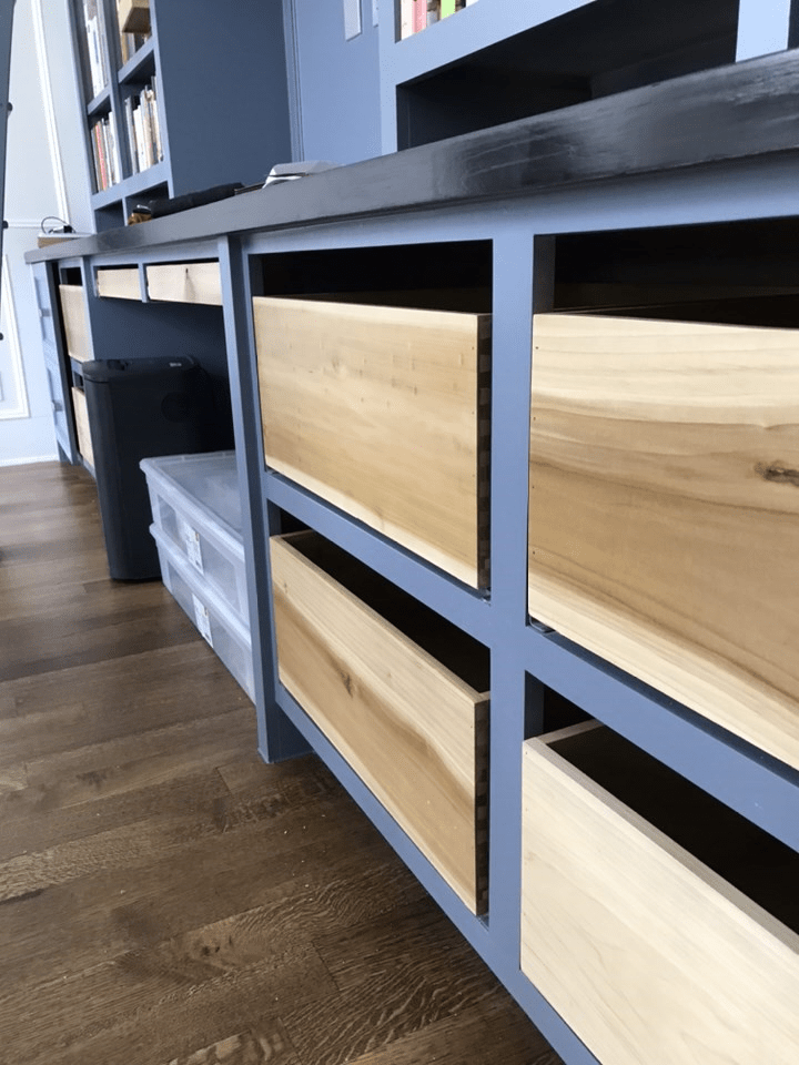 Custom cabinets are built by a professional carpenter or cabinet maker to exact measurements to fit only in the area they will be used. These cabinets may need to be taller than a standard cabinet or fit in a narrower space than standard sizes. They many even be designed and built to work around obstacles. Some carpenters/cabinet makers will measure and then build the cabinets off site at a remote workshop while others will build the cabinets on site to make sure they are fitting properly while they are building. Despite the fact that most cabinets come in prefabricated (or stock) sizes, custom cabinets offer options to fit any design or space. The nature of the custom cabinets allow for various different materials to be used in their construction including glass, tin, or wood doors.
