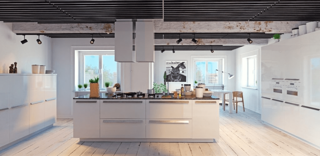Modern kitchen designs are meant to be sleek and sophisticated. They are very minimalistic, almost sterile, in design. A modern kitchen design will give you an open layout and clean lines. High-end cabinets create a flat-front, seamless look that complements the rest of the kitchen design. Typically designed with high-tech materials and reflective metals (stainless steel and copper are both very popular in this style), the modern look is sleek and sexy. Take your kitchen from boring and blasé to the glossy, minimalist look of the future with a modern kitchen design.